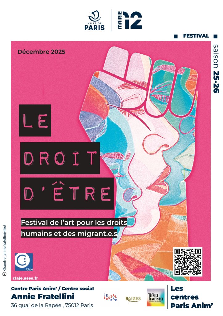 Festival d’art pour les droits humains et des migrant.e.s – soutenu par la Ville de Paris, Mairie du 12ème, Le Centre Paris Anim’/Centre social Annie Fratellini & le Social Bar